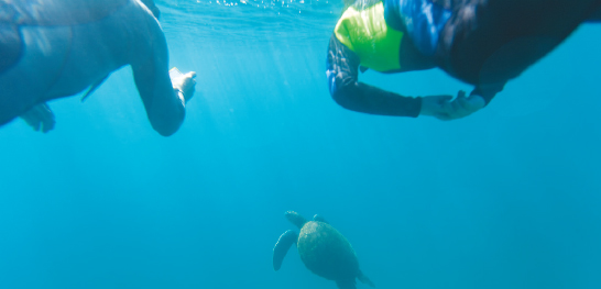 浮潛探索水底世界及由Puerto Villamil 40分鐘船程前往Tuneles,這裡可看到熔岩層和紅樹林,這裡亦成為浮潛的理想場地。 隨時遇見老鷹、海龜和五顏六色的大魚。