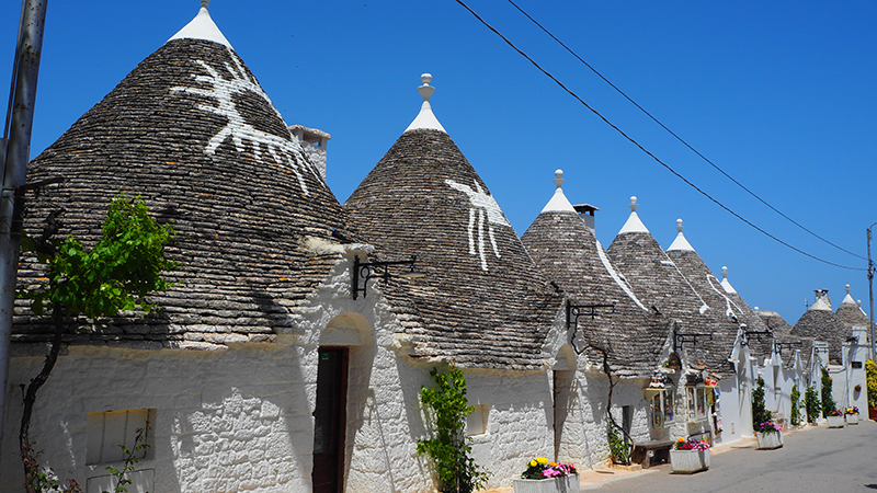阿爾貝羅貝洛:當地居民就地取材,利用石灰岩蓋起了一座座錐頂石屋,石屋頂端都豎立著宗教及當地風俗的象徵符號,用以驅逐惡魔,永保安康。石屋的外觀像蘑菇,因此又稱為「蘑菇屋」。