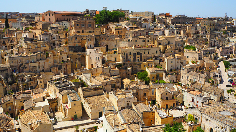 馬泰拉:保存完整的石洞風貌,此地以散布在喀斯特山谷間的沙西石屋Sassi而聞名,是地中海地區保存最好,面積最大的人類穴居聚落,亦是電影《受難記》取景地,因為當地的岩穴很像《聖經》中耶路撒冷的房屋,因此成為著名的觀光景點。