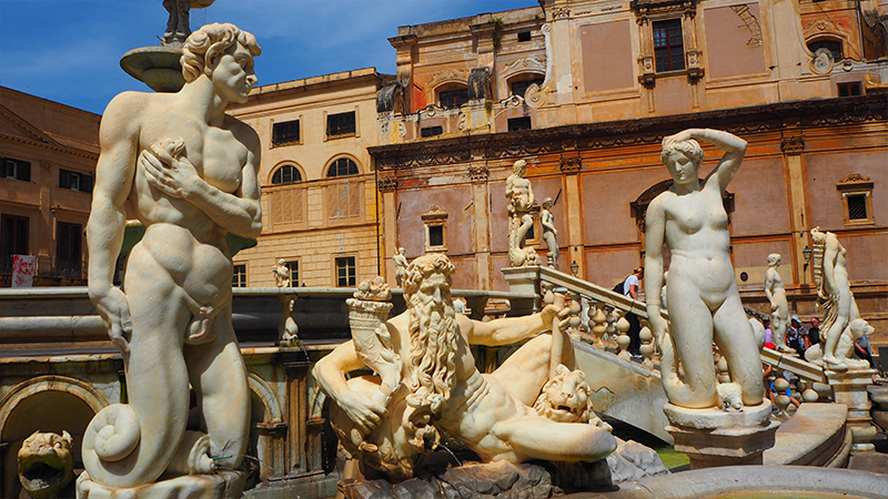 普雷托利亞廣場:又名羞恥廣場,1573年原本為聖克萊門特宮修建的噴泉,但為了擺放巨大的噴泉,便拆除了一些房屋,騰出地方,並設計了一個開放廣場。期後於1581年,完成了噴泉廣場的改造。