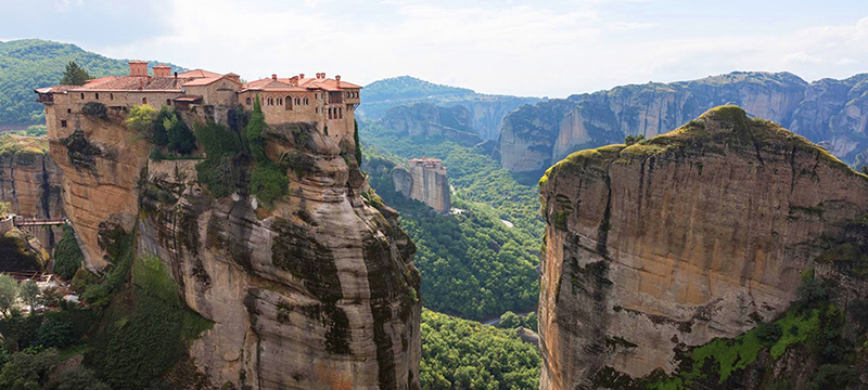 邁泰奧拉:邁泰奧拉在希臘語的意思為「天空之城」,當年修道士為了逃避土耳其回教徒的迫害,在千年之前的砂岩石頂端上建了修道院,四邊均為懸崖峭壁,貨物和人民均需經由繩索進出修道院。
