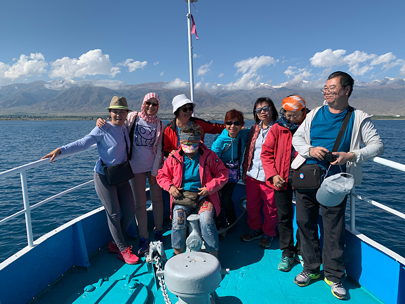 之後乘遊覽船遊伊塞克湖欣賞湖上景色。
