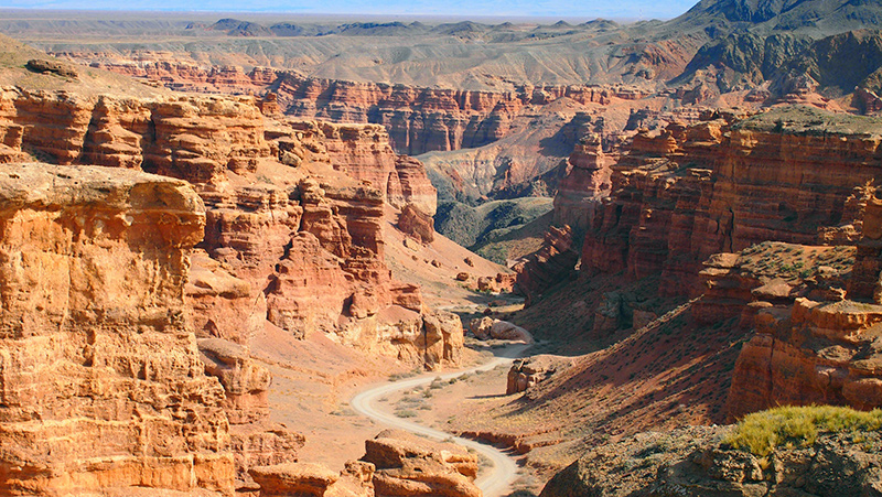 恰倫峽谷:是一段長達80公里的峽谷,在阿拉木圖以東200公里,靠近中國邊境,在天山山脈北部綿延154公里,屬恰倫國家自然公園的一部份,峽谷深度由150至300公尺不等,經由數百萬年前的河水沖刷而成奇岩怪石面貌,其中一段由不同的岩層所形成,被稱為谷中的城堡。