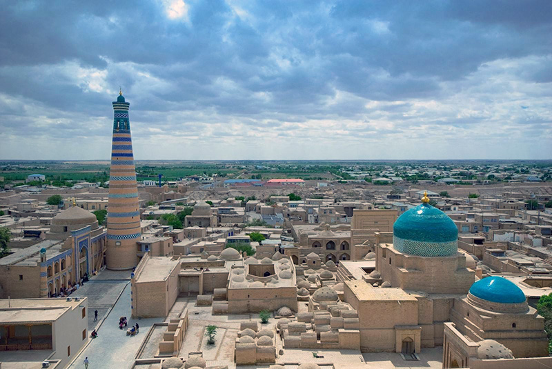 乘內陸機到烏爾根奇,乘車往古王都希瓦觀光。