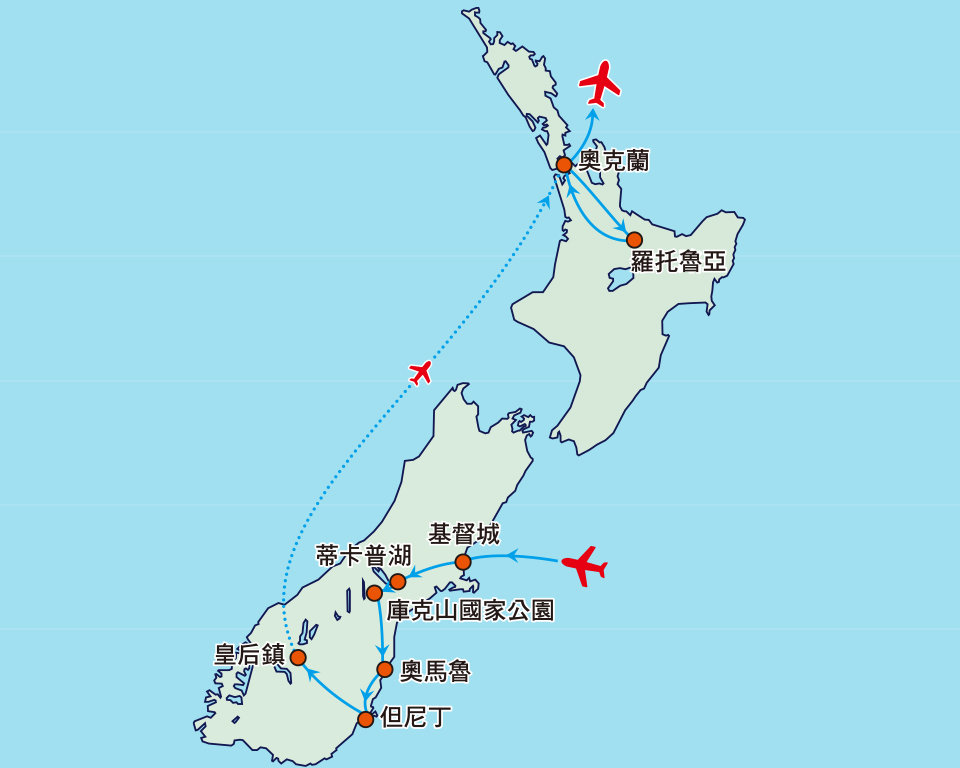 於香港國際機場集合,辦理登機手續後乘客機飛往新西蘭城市∼基督城。