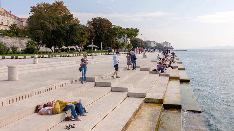 扎達爾海風琴:全球獨有的海風琴。海風琴是由一級級的石階所組成並且向海中伸展,而水下置有風管,透過海浪沖擊與潮汐發出不同旋律而得此名的。