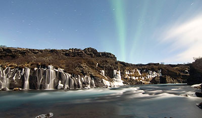 【哈爾格林姆斯大教堂、珍珠樓、冰島國家博物館、博爾加內峽灣谷、格拉布洛克火山、德爾達圖赫菲溫泉、赫倫溶岩瀑布、兒童瀑布、 雷克雅未克、晚上專家帶領追蹤北極光】