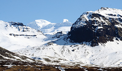 斯奈山半島:島上有很多大自然觀光點而被稱為冰島的縮影,包括了已有70萬年歷史的斯奈費爾火山及冰川,八十日環遊世界的法國作者,被譽為科幻小說之父的儒勒凡爾納 Jules Verne 曾經在他的名著“地心探險記”中將這個冰川描述為通往地心的門戶。