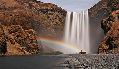 史克卡瀑布:是冰島最大的瀑布之一,度約25公尺、高約60公尺,有陽光的日子裡,常會見到彩虹甚至雙彩虹的出現。