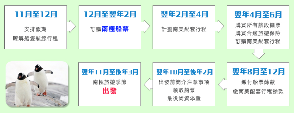 - 南北極地區偏遠,遇上意外的時候有可能衍生巨額醫療及運輸費用,因此您必須配備有足夠賠償金額的旅遊保險。
