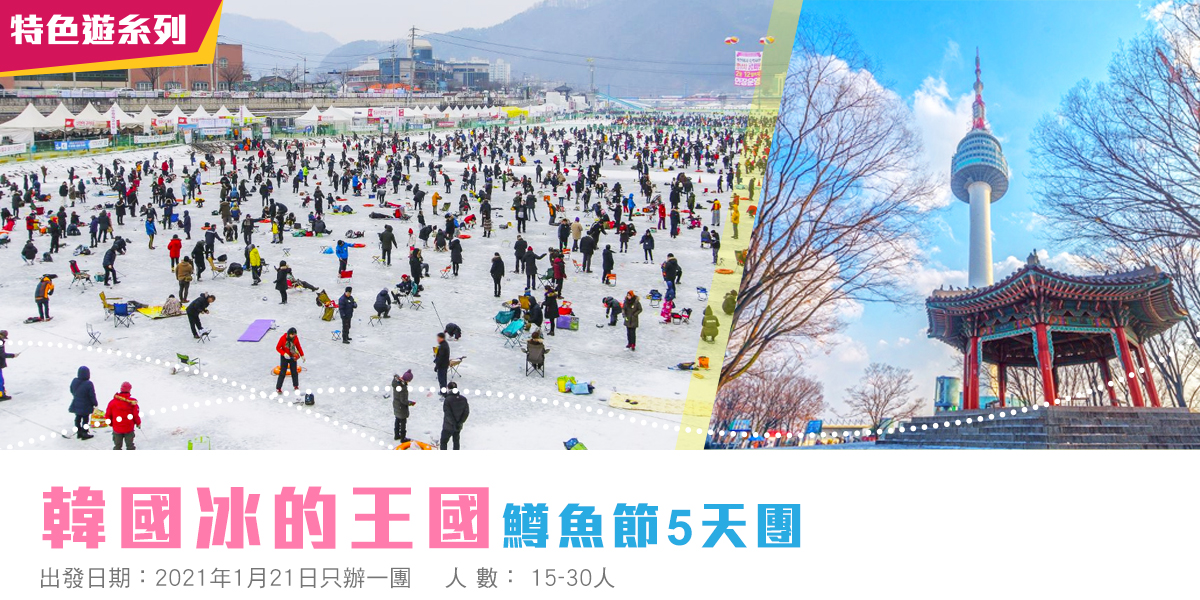 【特別安排參加一年一度-冰的王國華川山鱒魚慶典】體驗冰釣及欣賞雪城城堡巨型雪雕及室內冰雕廣場